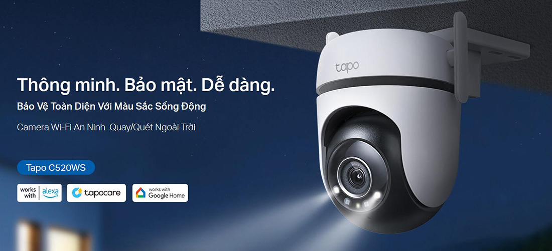 Camera TP-LINK Tapo C520WS là giải pháp giám sát an ninh ngoài trời cao cấp với độ phân giải 2K QHD 4MP cho hình ảnh sắc nét vượt trội. Sở hữu khả năng quay quét linh hoạt 360° cùng công nghệ Starlight cho hình ảnh có màu ngay cả trong điều kiện ánh sáng yếu, thiết bị giúp bạn giám sát toàn diện cả ngày lẫn đêm. Camera tích hợp AI thông minh nhận diện người, xe và thú cưng, đồng thời hỗ trợ cảnh báo bằng âm thanh và đèn chiếu sáng mạnh mẽ để tăng cường an ninh.