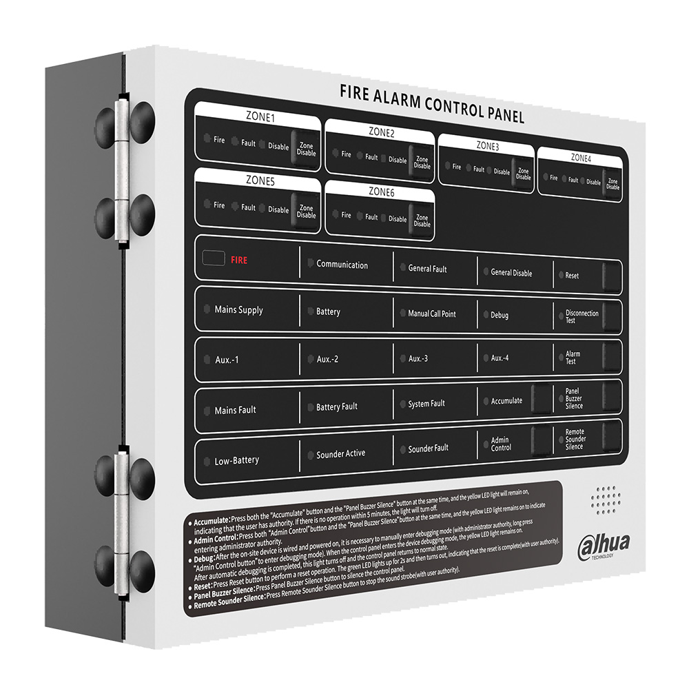 - DHI-HY-C102-6 là tủ trung tâm báo cháy thông thường, được thiết kế để kết nối và quản lý các đầu báo khói, đầu báo nhiệt, nút nhấn báo cháy và các thiết bị báo động khác trong hệ thống báo cháy có dây.